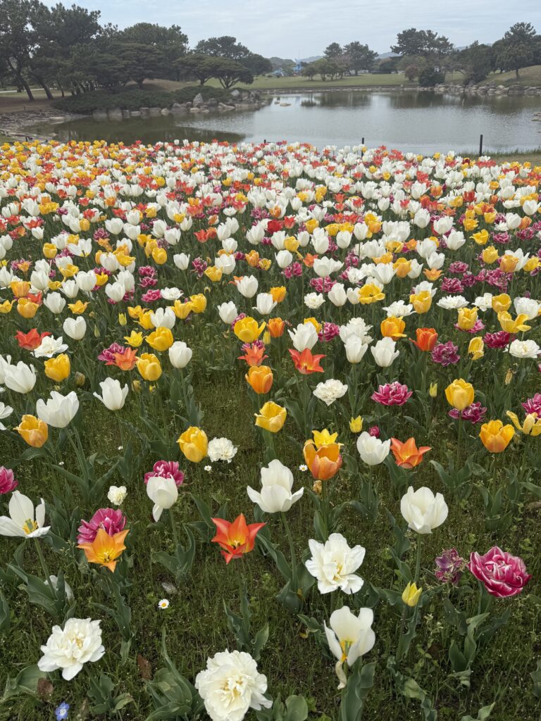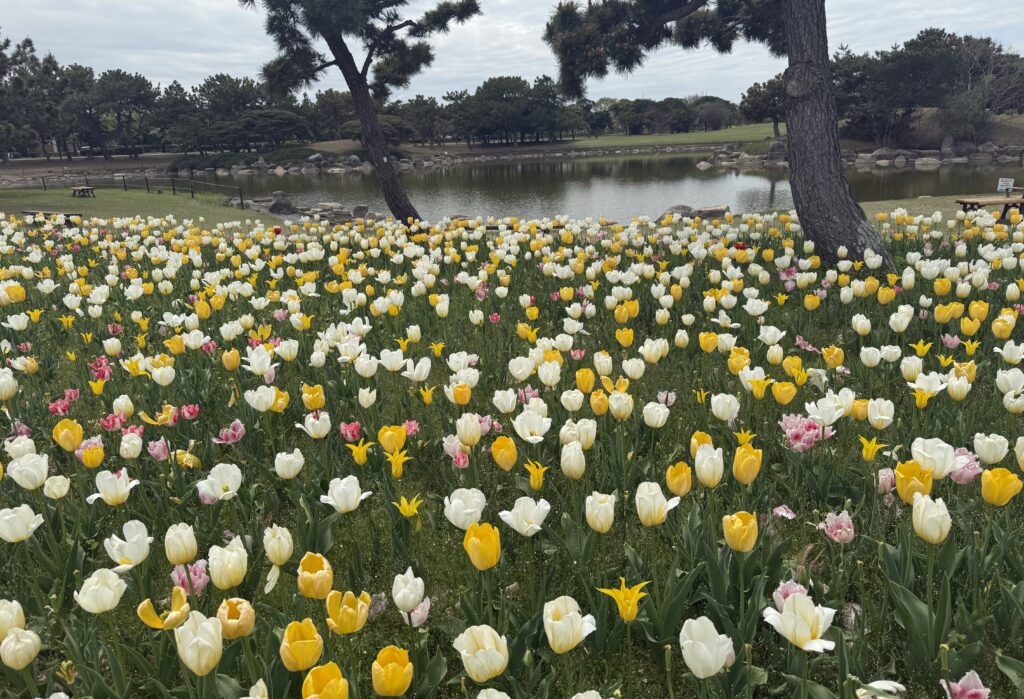 ほかにも赤・紫・ピンクなどのチューリップ花壇もあったのですがほぼ散っていました。